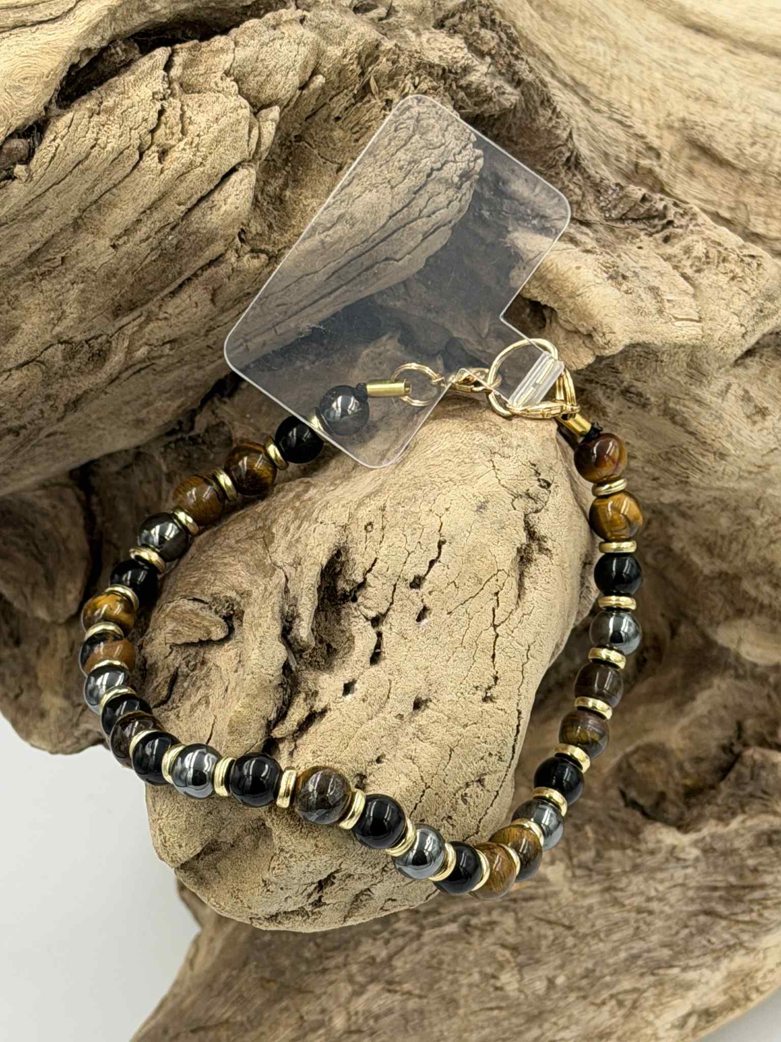 En œil de tigre, onyx et hématite avec déco doré